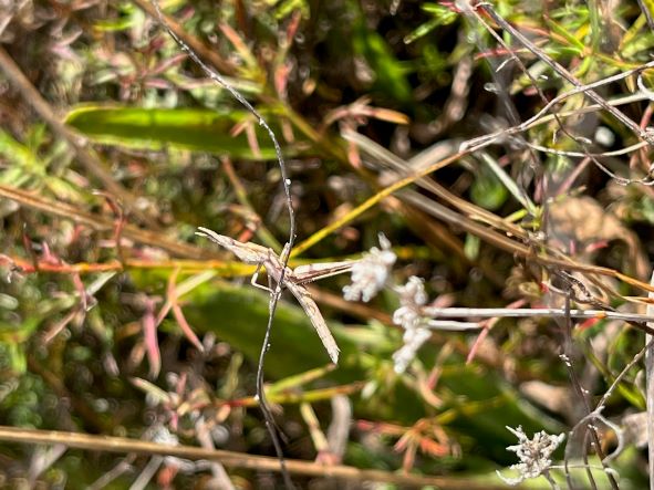 Key’s matchstick grasshopper is a small insect with a distinctly elongated body shape and no wings. They are mostly brown in colour but may also be green. Length for males is up to 15mm and females up to 25mm. The grasshopper has an annual lifespan hatching in mid-summer, mature by autumn to mate in early spring before laying eggs in the ground and dying off in late spring.
