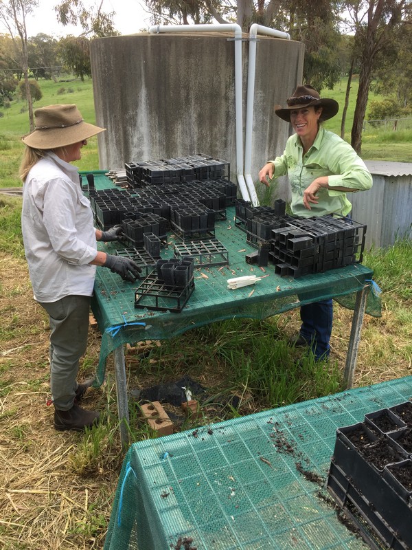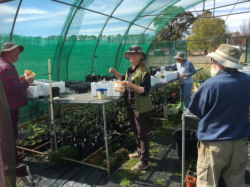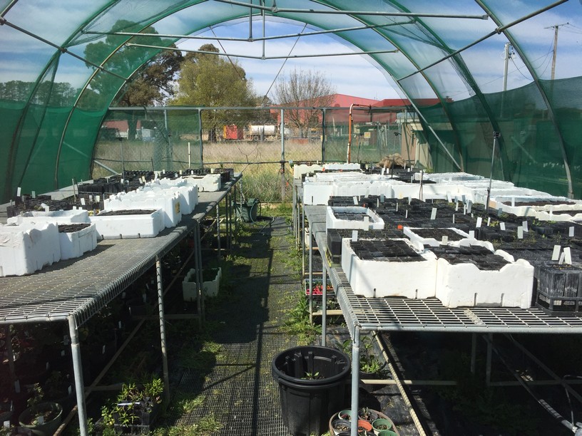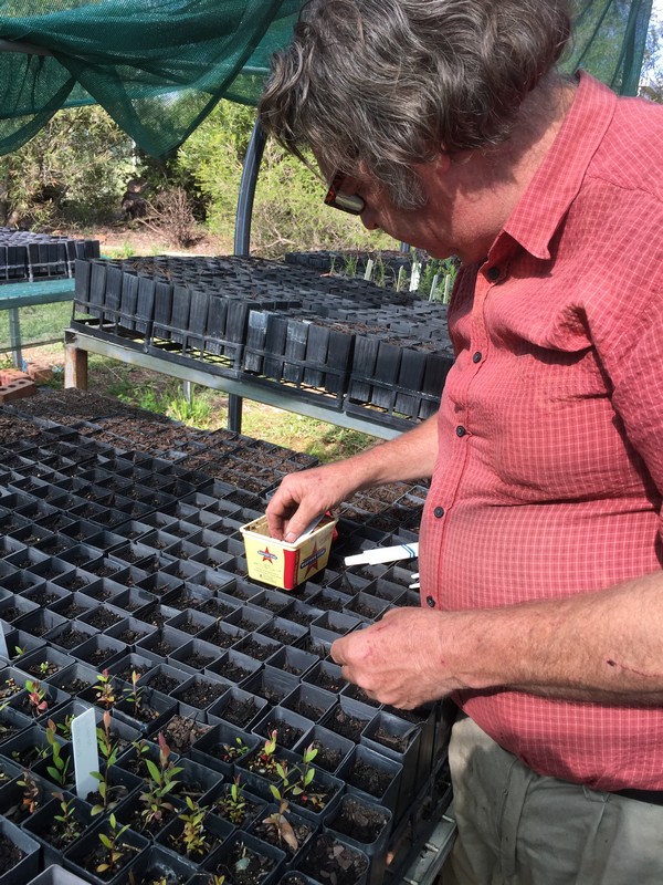 A small group of volunteers assisted the Wattle Valley nursery manager sow 2000 tubes of native climate ready seed. Wattle Valley was responsible for sowing Dodonaea viscosa (Hop Bush) which was sourced by Greening Australia and their regional seed collecting network. The Yass Area Network (YAN) Climate Ready trial required locally sourced seed and seed from hotter drier and colder wetter regions. Local provenances included Mt Stomlo, Weston Creek and Pierces Creek ACT. Seed from hotter drier regions and colder wetter regions was obtained from Hattah-Colyeambully, Wodonga, Urana, Bobundara and Ironmungy.