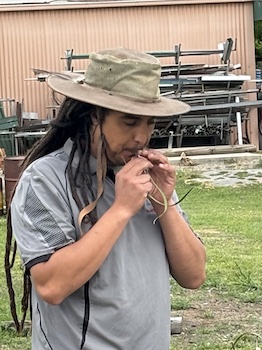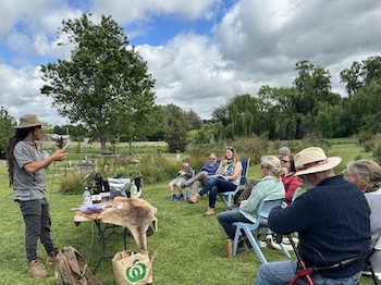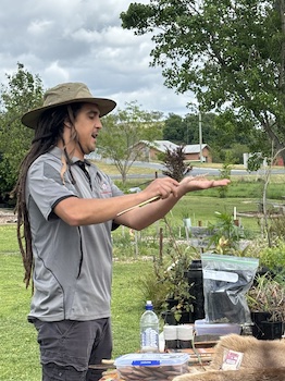 In addition to the cultural aspect of the workshop, Blake Cannakle took the lead in teaching the group about the biology of soil and the critical role it plays in plant propagation. Participants got their hands dirty as they were introduced to various propagation techniques, including smoke treatment, scarification, surface sowing, lightly covered sowing, heat treatment, and cutting. Drawing on our surroundings participants were encouraged to wandering through the native plant gardens where they were shown the best way to take cutting for propagation.  This hands-on experience was invaluable in understanding the intricacies of nurturing native plants.