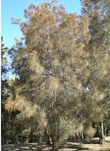 The River Oak is an evergreen tree with fine greyish green needle-like foliage that grows to a height of 10–35 m with a spread of about 10 metres. trees are usually found in sunny locations along stream banks and swampy areas. It's widely recognised as an important tree for stabilising riverbanks and for soil erosion prevention accepting wet and dry soils. The foliage is quite palatable to stock.